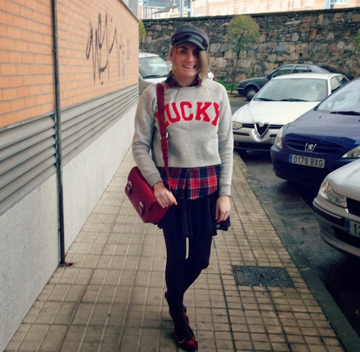 | Gorra/hat: Aliexpress Sudadera/Hoodie: Sheinside Camisa/Shirt: ZARA Falda/Skirt: Boohoo Slippers: ZARA Abrigo/Coat: MANGO Bolso/Bag: ZARA |